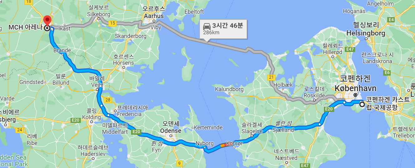 미트윌란의 홈 경기장은 바로 MCH 아레나라는 곳인데 코펜하겐 카스트럽 국제공항에서 차로 이동하면 약 4시간 정도 걸려 도착할 수 있는 것 같습니다.